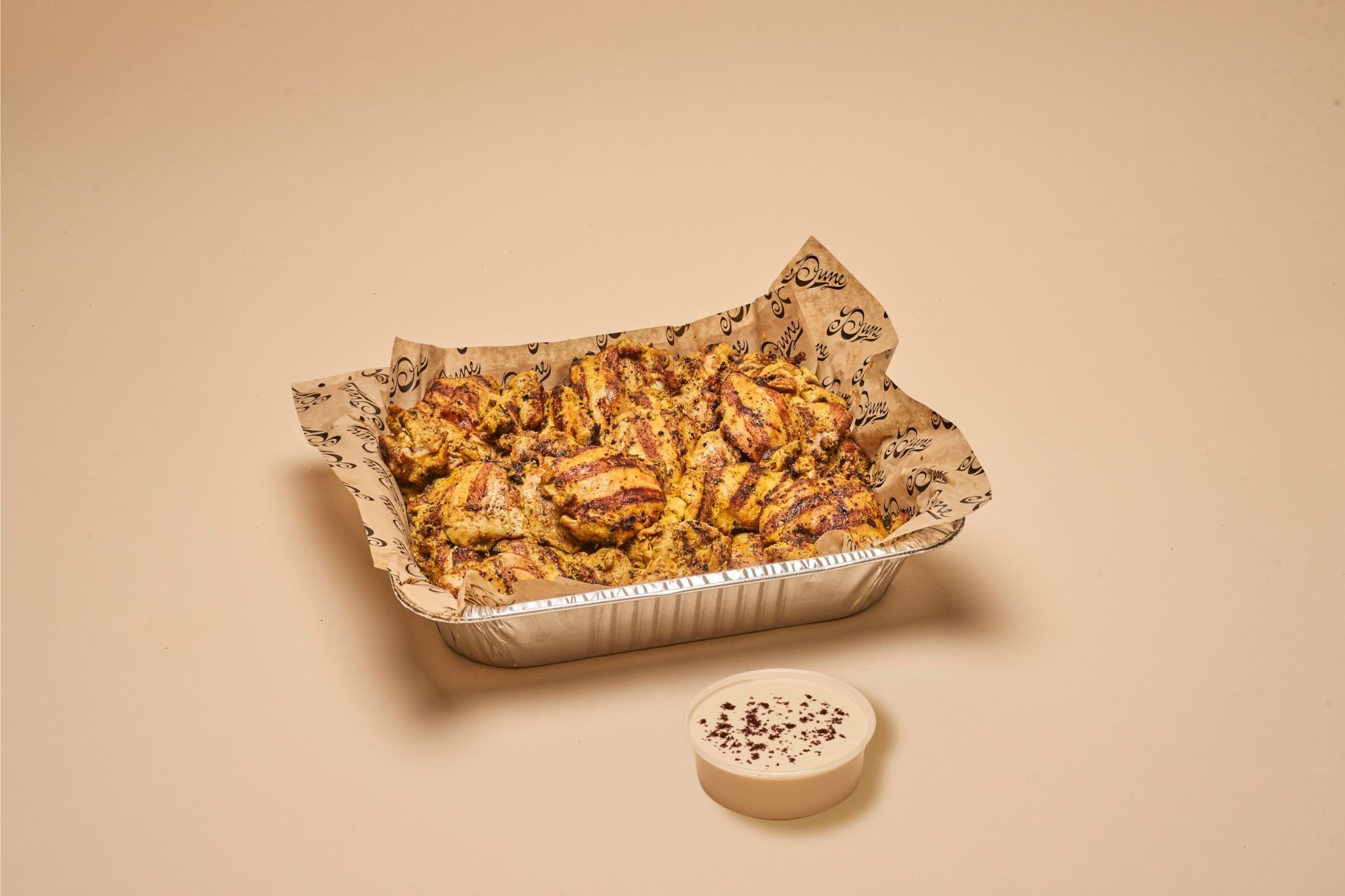 Catering › Grilled Chicken Side Image 1 of 1 Grilled Chicken Side $65.00 12 pieces free range grilled chicken thighs. Served with 8oz tahini. Quantity: Add To Cart Added! 12 pieces free range grilled chicken thighs. Served with 8oz tahini.