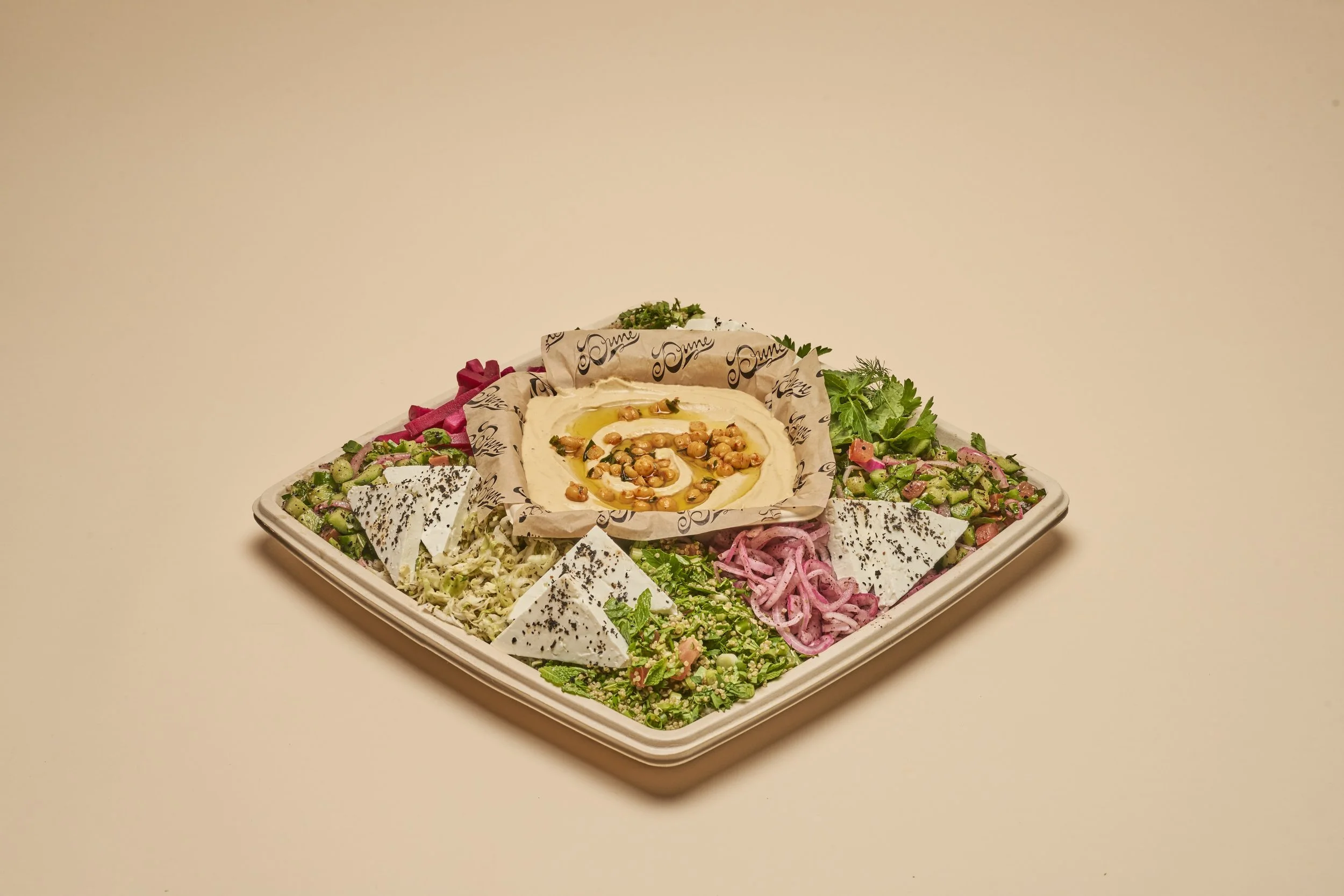 Our platters are served on pulp trays and our hot items are served in aluminum trays.